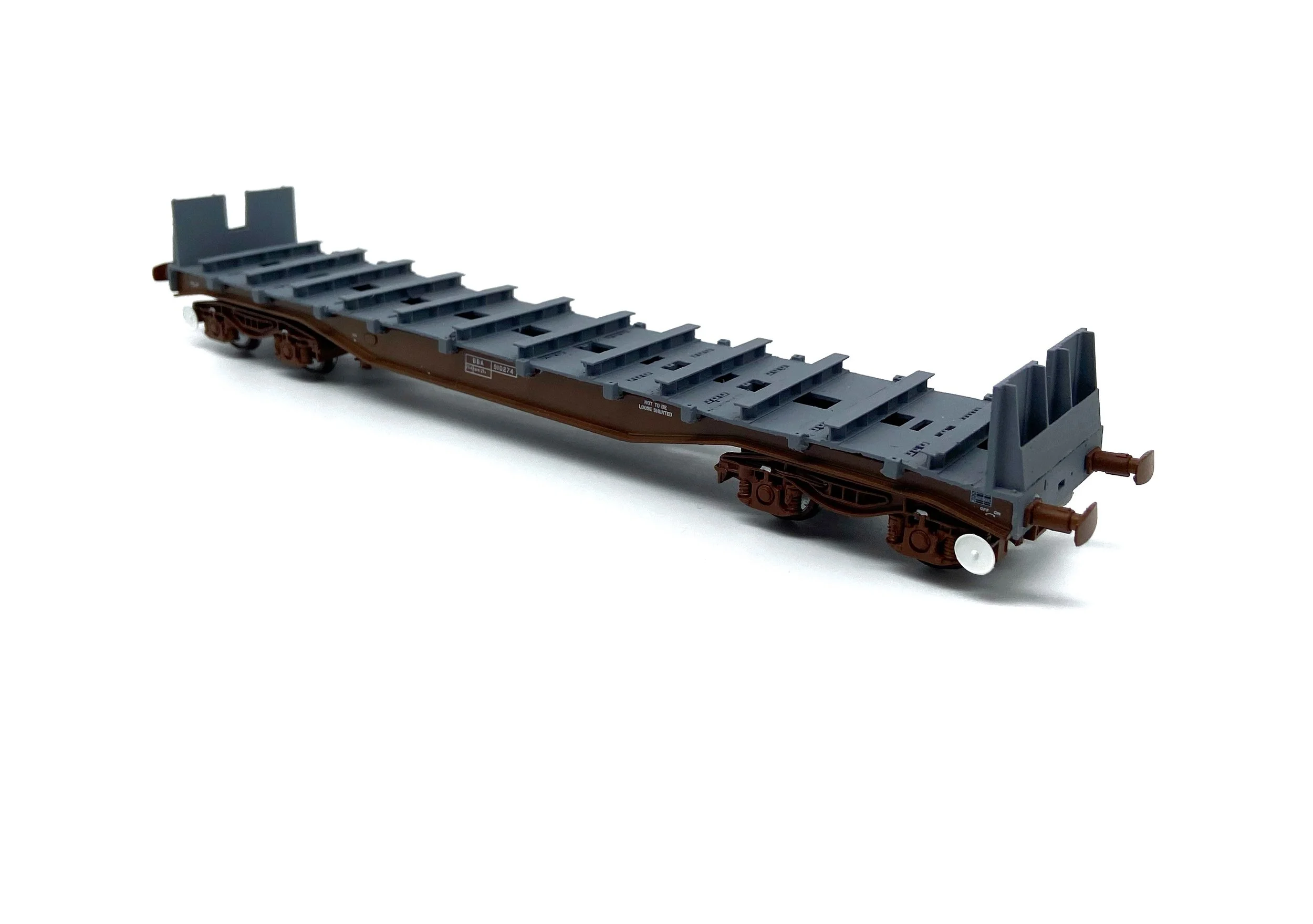 The three new decks are very different; the first example keeps all the features from the original deck release but with the end plates removed and the addition of cradles. Converted in the mid-to late 1980s, this version has six cradles fitted for the transportation of stainless slab cast as well as rolled steel coils.